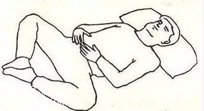 坚持练一段时间前胯髋关节处就会松开-两膝可以平贴于床。到了这时候,在睡眠的状态,姿势也易变形。初用这两个姿势睡觉,可能前胯没有松开,这时可以采取两膝下放书或毛毯的方式来过渡。