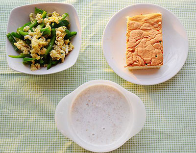 、海绵蛋糕 青椒炒蛋 牛奶麦片