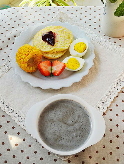 18、果酱面包 玉米 白煮蛋 黑芝麻糊 草莓
