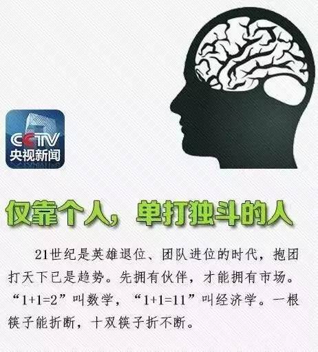 二、整合已经开始 1、360出台,直接把杀毒变成免费的,淘汰了金山毒霸; 2、淘宝电子商务2012年一万亿的销量,逼得“苏宁、国美”这些传统零售巨头不得不转型,逼得“李宁服装”关掉了全国1800多家专卖店,连天上发了卫星的“沃尔玛”都难以招架。如果马云“菜鸟”行动成功的话,24小时内,全国到货的梦想实现,那么这些零售巨头的命运又将会是如何? 3、马云“余额宝”的出台,18天狂收57个亿资金存款,开始强夺银行的饭碗。 三马(马云、马化腾、马明哲)的网上保险公司的启动,预计未来五年将会有200万保险人员失业,其他保险公司将何去何从? 腾讯微信的出台,6个亿的用户还在增加,直接打劫了中国移动、电信和联通的饭碗。 所以,如果有一天你隔壁开火锅店的张三,卖手机卖得比你好的时候,你不用觉得惊讶,因为,这是一个跨界的时代,每一个行业都在整合,都在交叉,都在相互渗透,如果原来你一直获利的产品或行业,在另外一个人手里,突然变成一种免费的增值服务,你又如何竞争?如何生存? 所以,未来的竞争,不再是产品的竞争、不再是渠道的竞争,而是资源整合的竞争,是终端消费者的竞争,谁能够持有资源,持有消费者用户,不管他消费什么产品、消费什么服务,你都能够盈利的时候,你才能够保证你的利益,才能立于不败之地。
