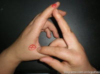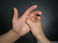 操作方法:四指在下,大拇指指甲部位掐在内关穴上,向两侧推、掐、揉,顷刻手掌和手臂迅速发麻。