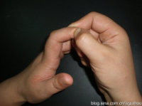 如果操作不便,还可以用线或绳将食指指甲根部捆绑一会,松开再绑发麻为止。不可过度以免造成新的损伤。
