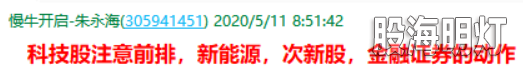 0511早评:上周大盘零号高开2882点,回踩最低2884点,上攻站稳2890后最高2903点未有效站稳2900点收盘2895点,个股结合控仓或空仓,留下精劲强,去掉瘟懒散。周一三线2882,2897,2910!目前2860已经成为四级金梯,只要有效站稳2897点注意2924点。上线不过注意高抛个股,下线不破或不补零则大胆低吸。周五和大家强调的新能源车,次新股,要重点关注: 0511收评:今日大盘零号2901点开盘最高2914点回落午间收盘破掉2900点,可能会去2890一线,早盘结合卖阳的同学等候确认。午后大盘最低2884点收盘2894点,日象需要确认,明日三线2882,2894,2901或2910!目前四级金梯还在预设中,需要量性走强才可。总体看住2878一线! 重点关注科创板、次新股、新科技、新能源、新生活板块的个股机会,业绩预增叠加量价结构好的个股机会。 次新股高位股注意下风险即可,最好是概念叠加超跌三低三有的次新。 科技股华为,5G概念,芯片,物联网,区块链,软件服务。 新能源充电桩,锂电池,新能源车,光伏概念,超导概念,特高压。 国防军工,化工,农业、食品。 证券适当关注能不能突破大阴实顶。 建筑、建材、房地产老基建,国防军工继续关注。 记住板块轮动秩序,主力玩的跷跷板,只有踏准节奏才能赚钱,不然就是大面。大家自己对号入座。 涨趋趋势:凹底淘金为重点三低三有有底有王有金阶,假阴战法,回马枪,凹口淘金。 新同学以学习为主,慢牛开启第十六期基训班案例,管理要求带头划线预判,学员划线后二群审批,养成一个好的学习环境和行为。 连板票:新农开发,元隆雅图,轴研科技,乾照光电,容大光电。中迪投资,海航投资笨基训班一网打尽。 四连板: 朝阳科技伏击百分之30 乾照光电连板: